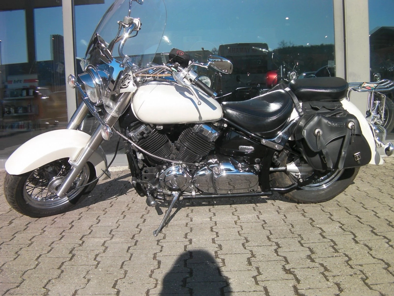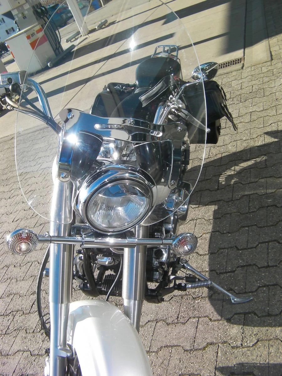 Auffälliger Cruiser von Yamaha-Vertragshändler. Inspekion haben wir in unserer Werkstatt neu gemacht. Die TÜV-Abnahme lassen wir vor Auslieferung neu machen.