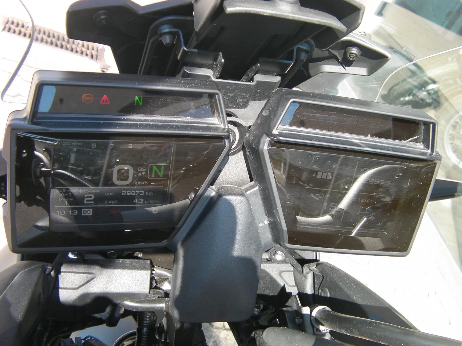 - umgefallen li.: Kratzer an Tankverkleidung, Handschutz und Spiegel