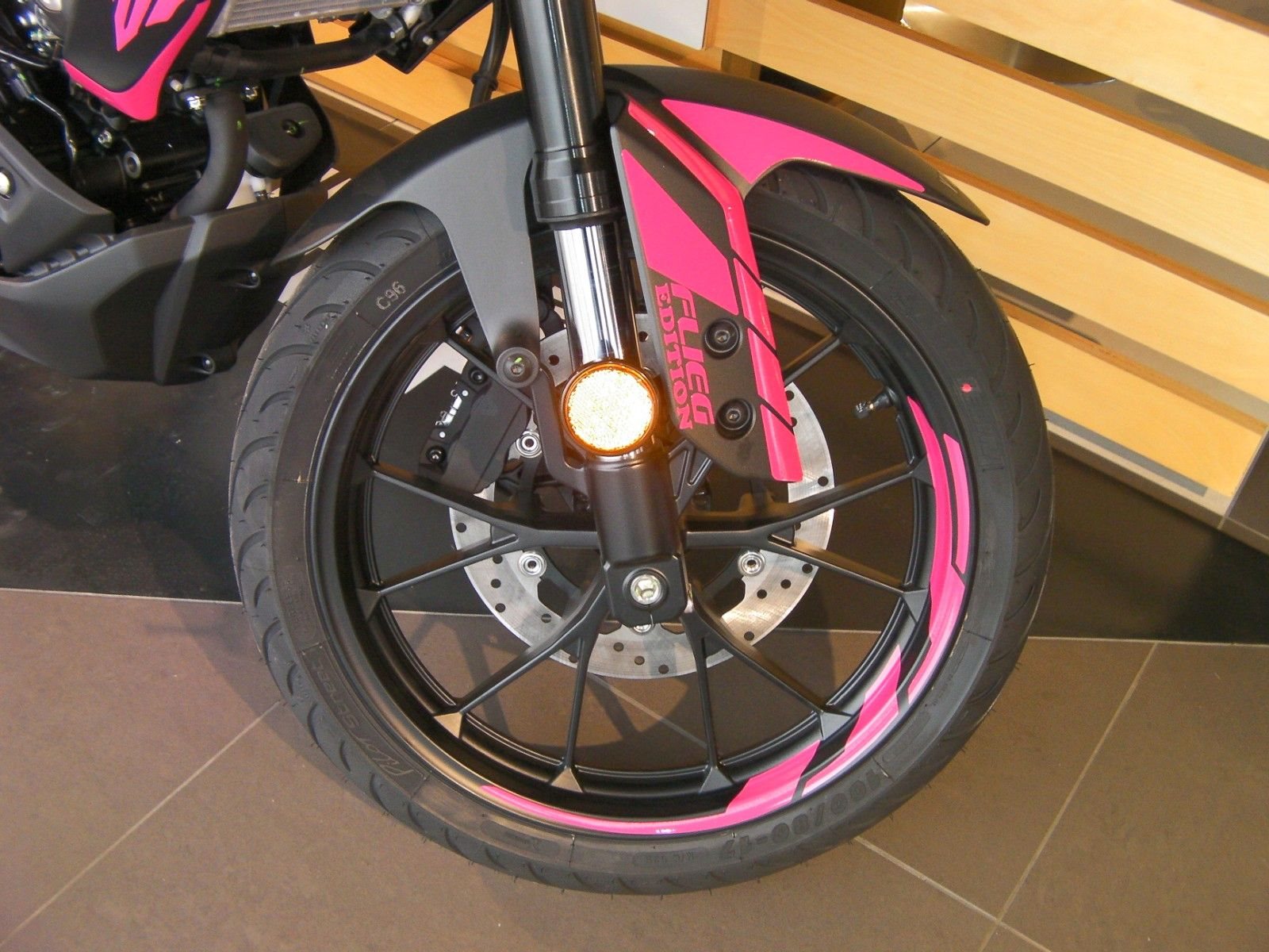 - breiter Hinterradreifen mit 140er Querschnitt